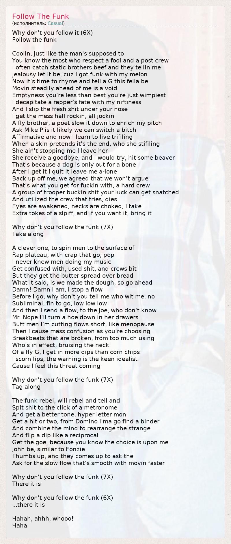 А как ты думаешь, о чем песня "Follow The Funk" ?