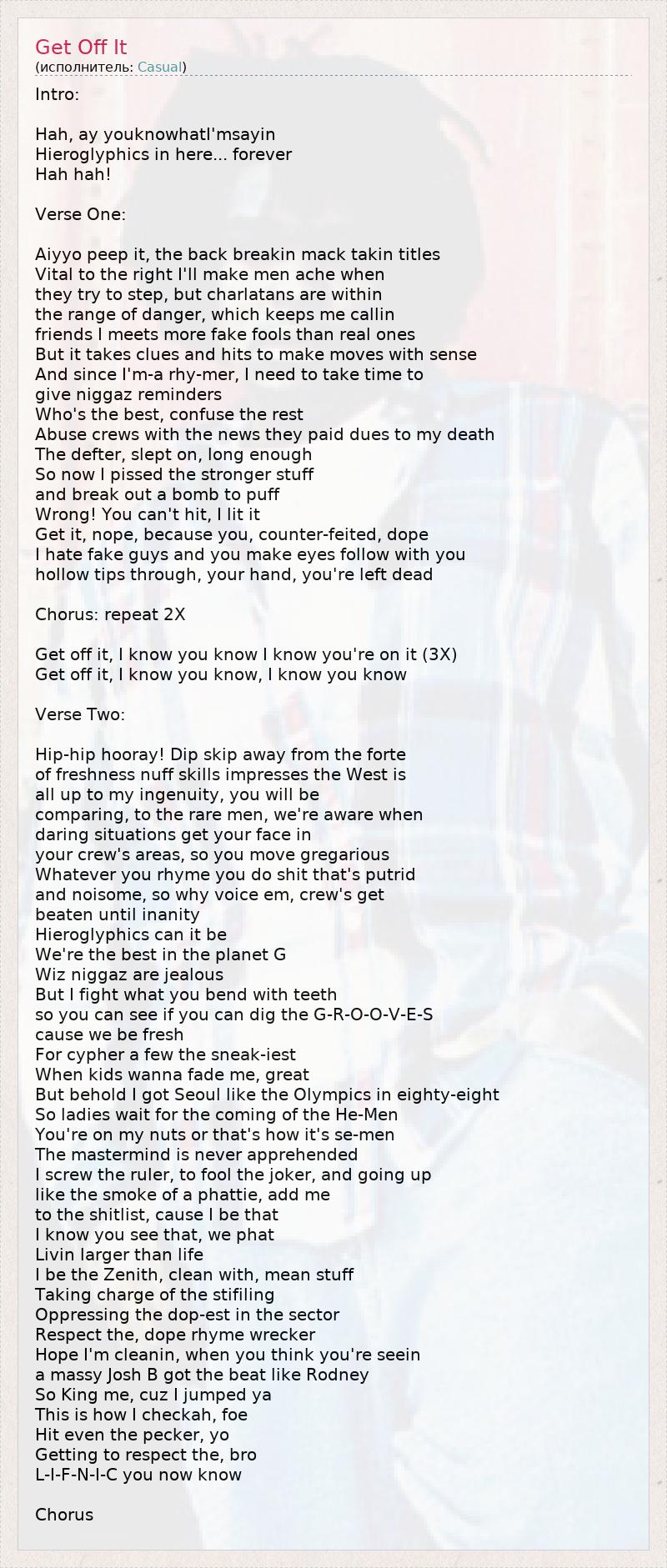 Get off it, I know you know I know you're on it (3X)
