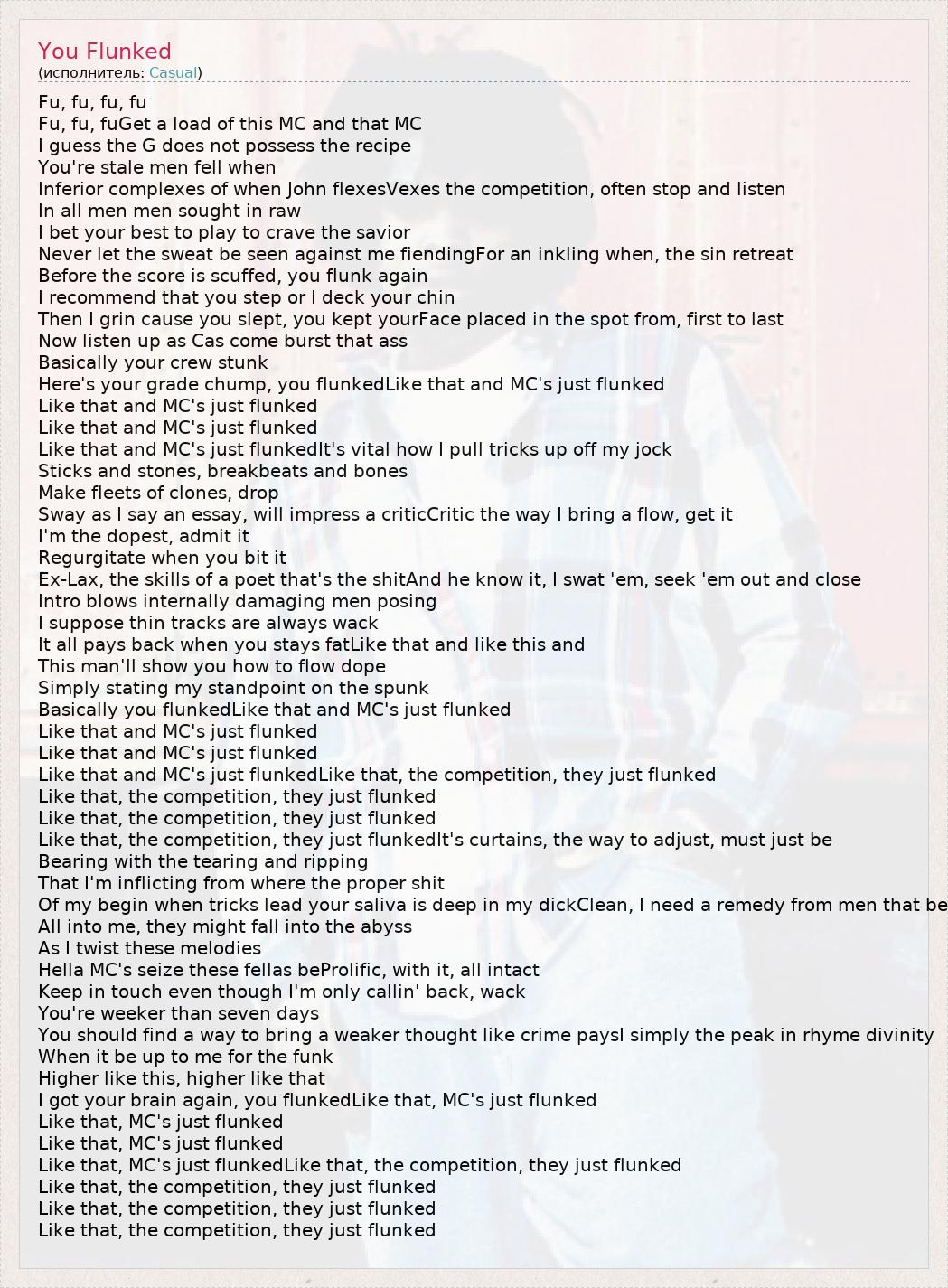 Like that and MC's just flunkedLike that, the competition, they just flunked