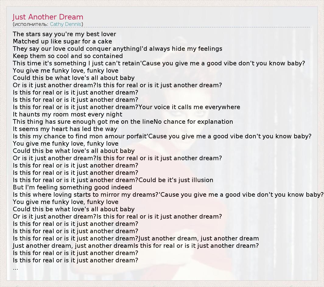 А как ты думаешь, о чем песня "Just Another Dream" ?