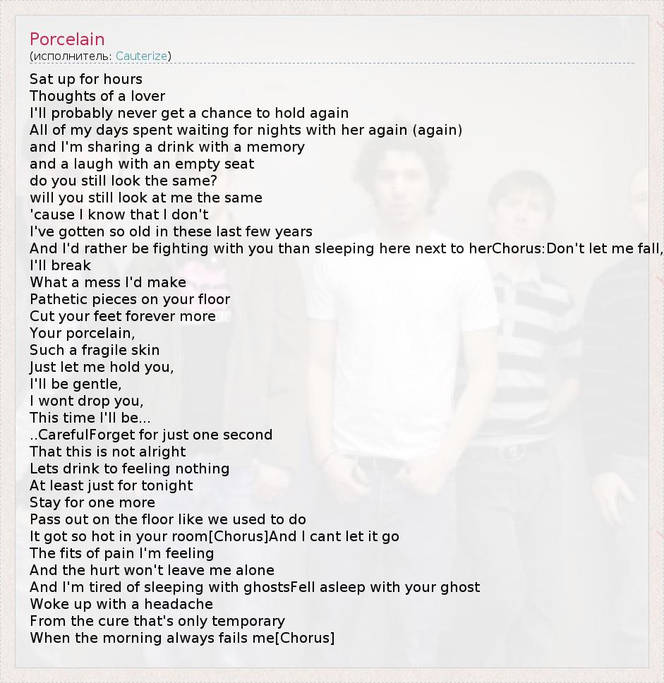 And I'm tired of sleeping with ghostsFell asleep with your ghost