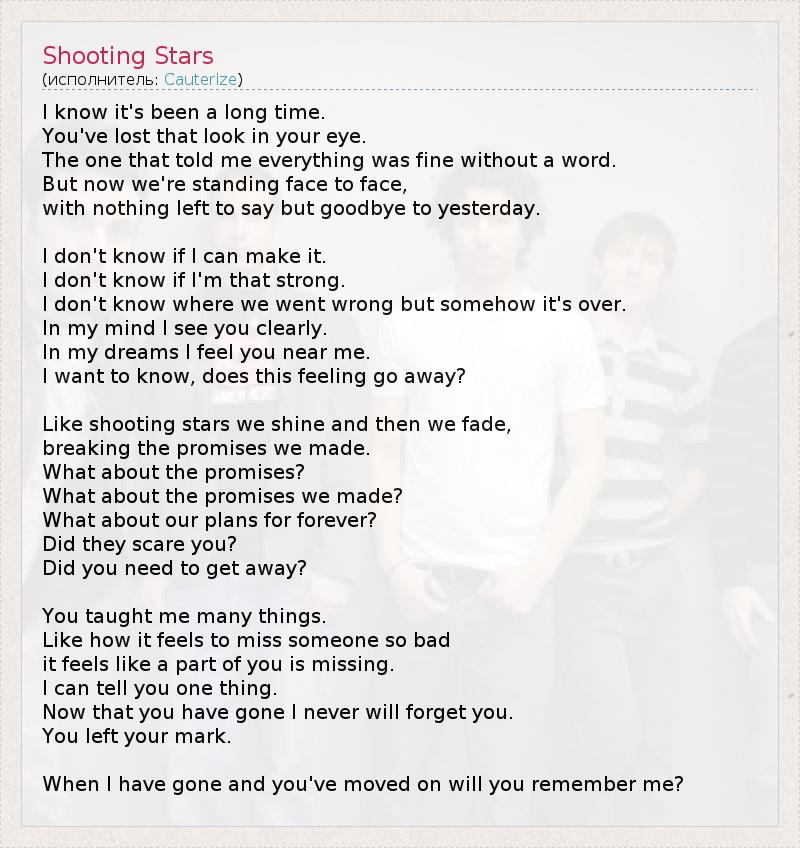 А как ты думаешь, о чем песня "Shooting Stars" ?