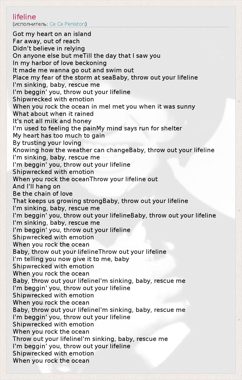 I'm beggin' you, throw out your lifelineBaby, throw out your lifeline