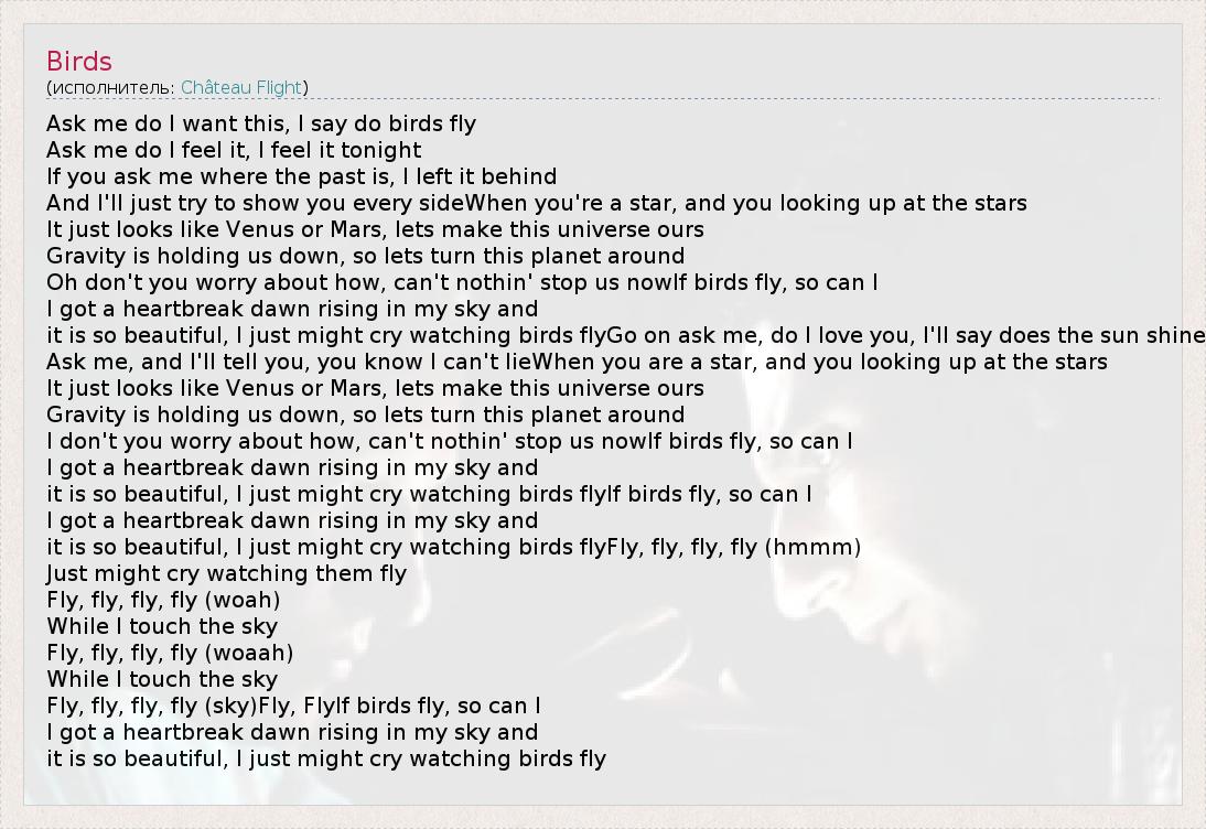 it is so beautiful, I just might cry watching birds flyFly, fly, fly, fly (hmmm)
