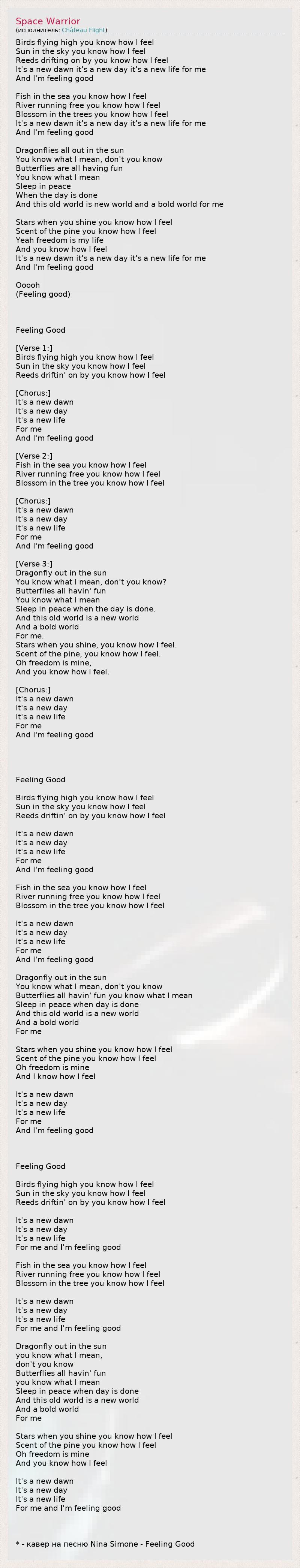 * - кавер на песню Nina Simone - Feeling Good