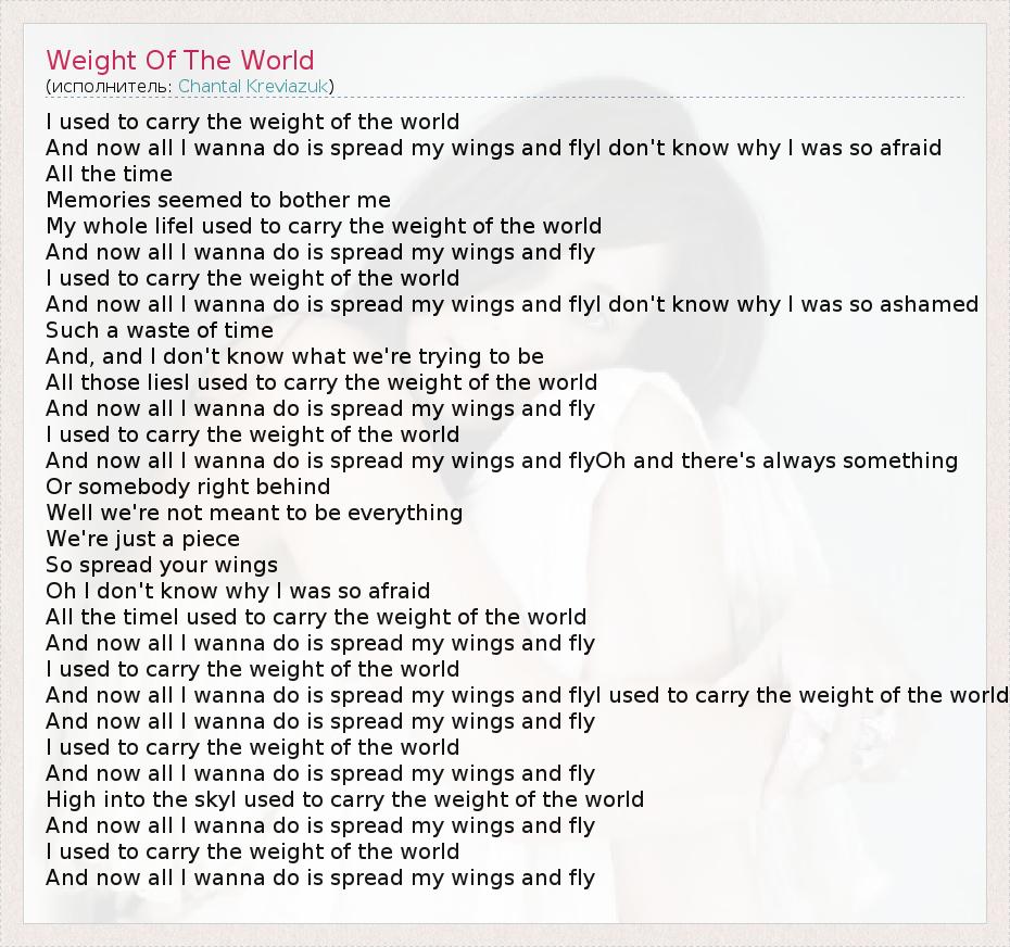 А как ты думаешь, о чем песня "Weight Of The World" ?
