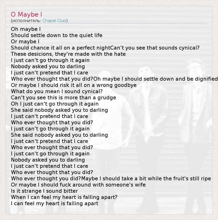 А как ты думаешь, о чем песня "O Maybe I" ?