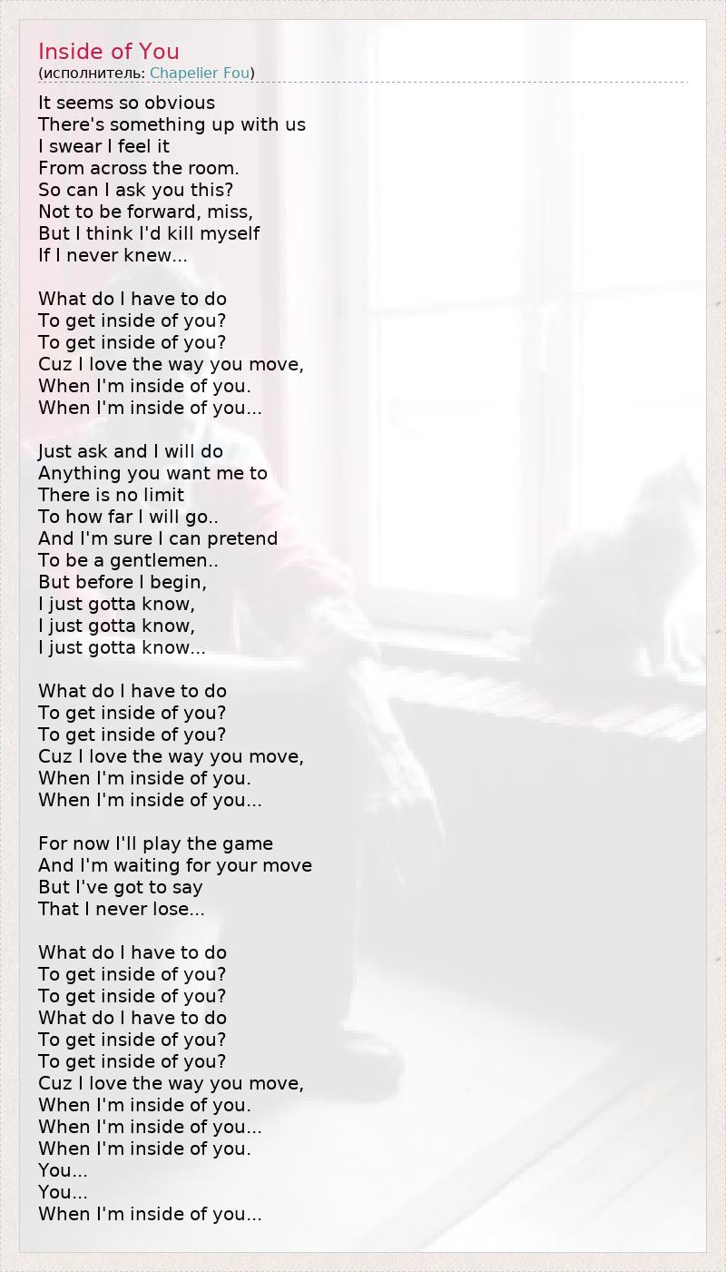 А как ты думаешь, о чем песня "Inside of You" ?