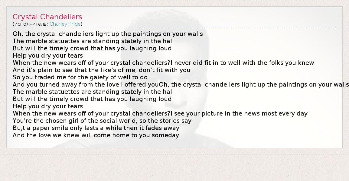 А как ты думаешь, о чем песня "Crystal Chandeliers" ?