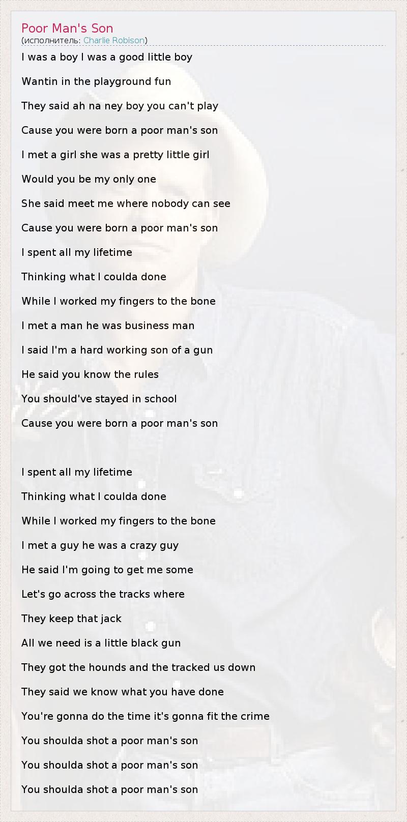 А как ты думаешь, о чем песня "Poor Man's Son" ?