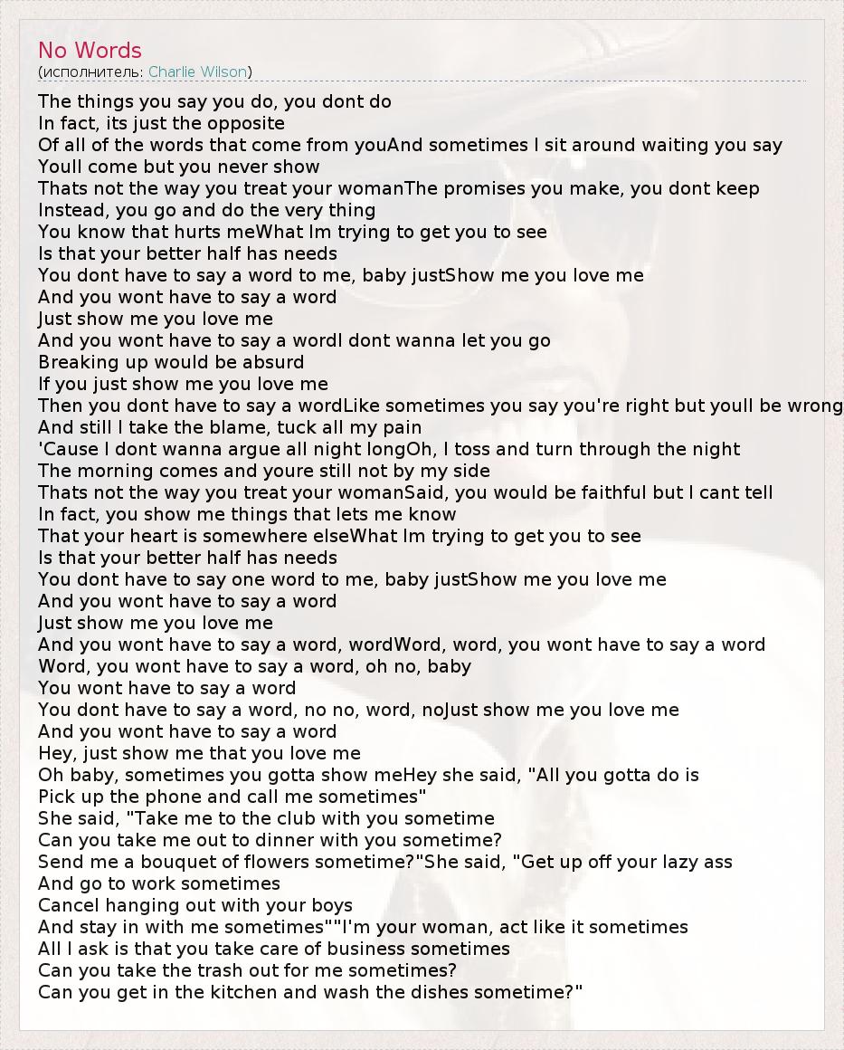 And you wont have to say a word, wordWord, word, you wont have to say a word