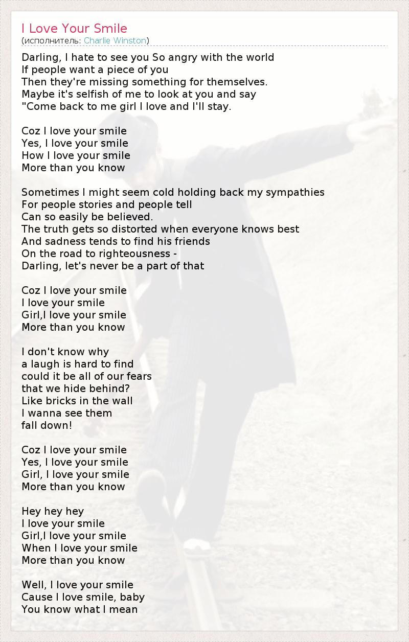 А как ты думаешь, о чем песня "I Love Your Smile" ?
