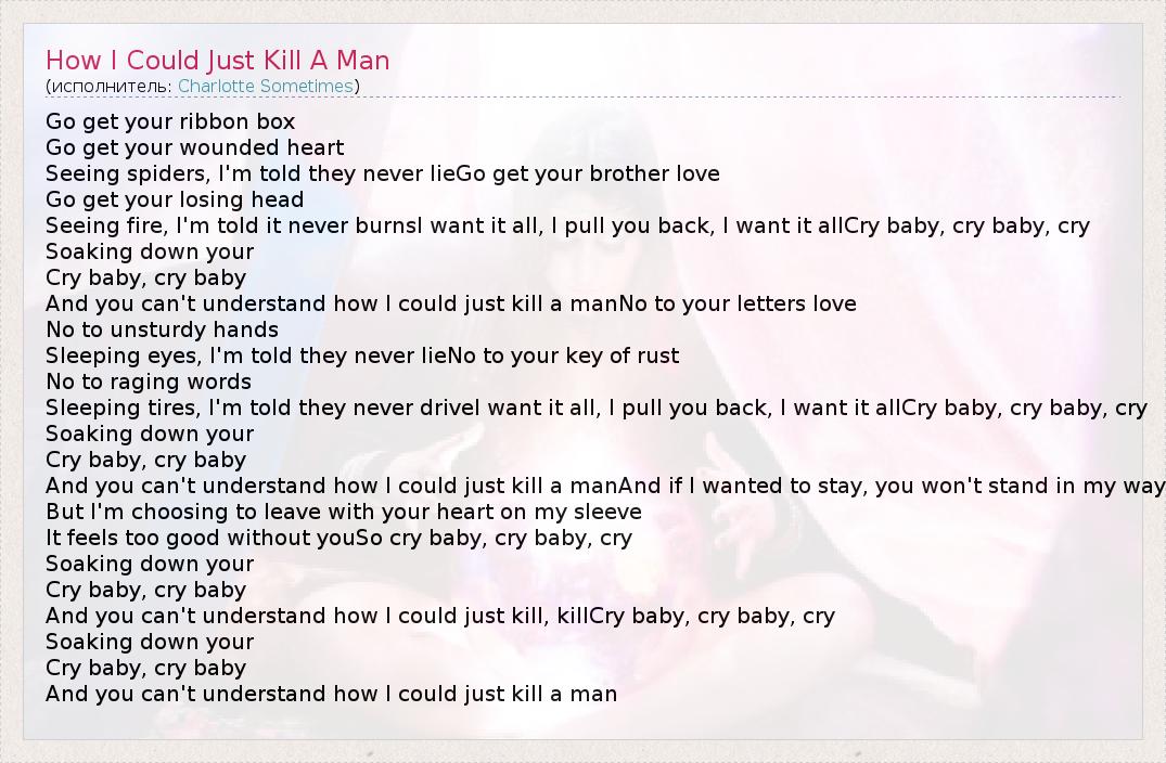 А как ты думаешь, о чем песня "How I Could Just Kill A Man" ?