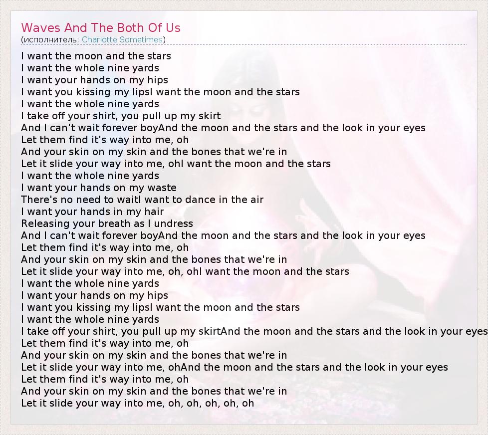 А как ты думаешь, о чем песня "Waves And The Both Of Us" ?