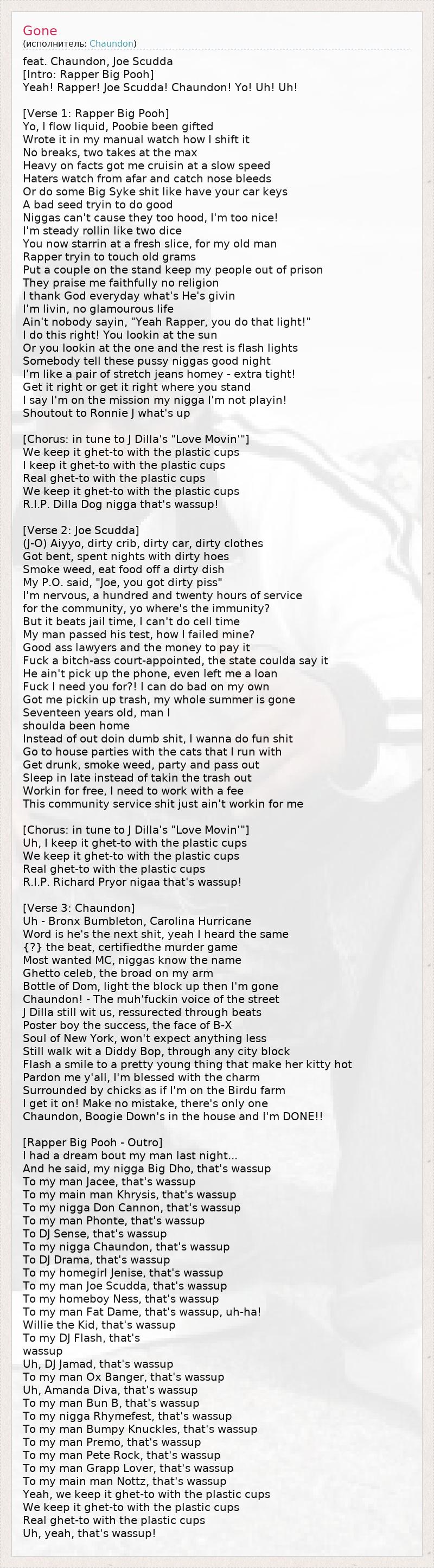 А как ты думаешь, о чем песня "Gone" ?