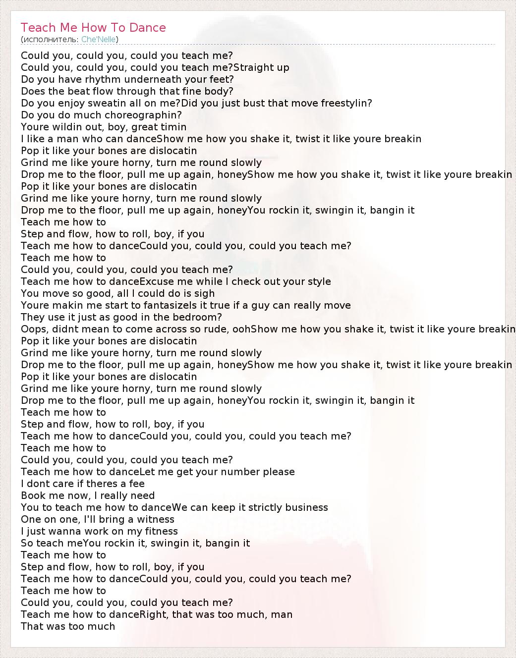 А как ты думаешь, о чем песня "Teach Me How To Dance" ?
