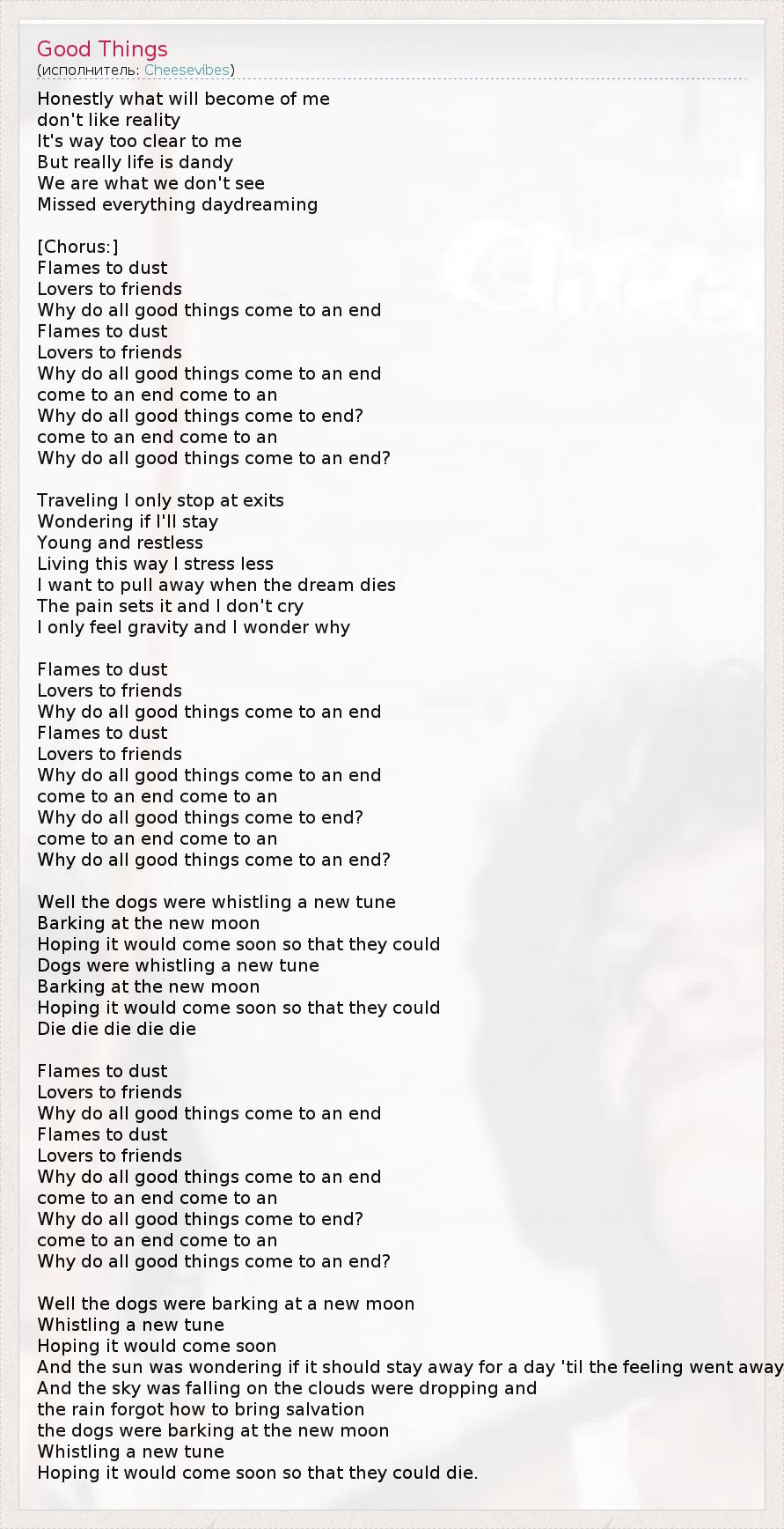 А как ты думаешь, о чем песня "Good Things" ?