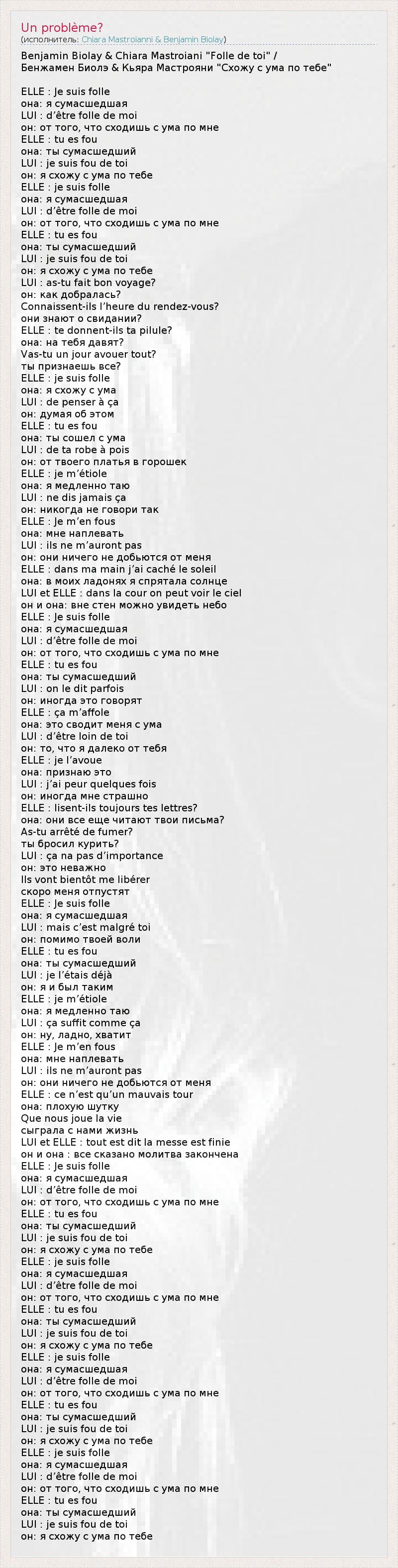 Бенжамен Биолэ & Кьяра Мастрояни "Схожу с ума по тебе"
