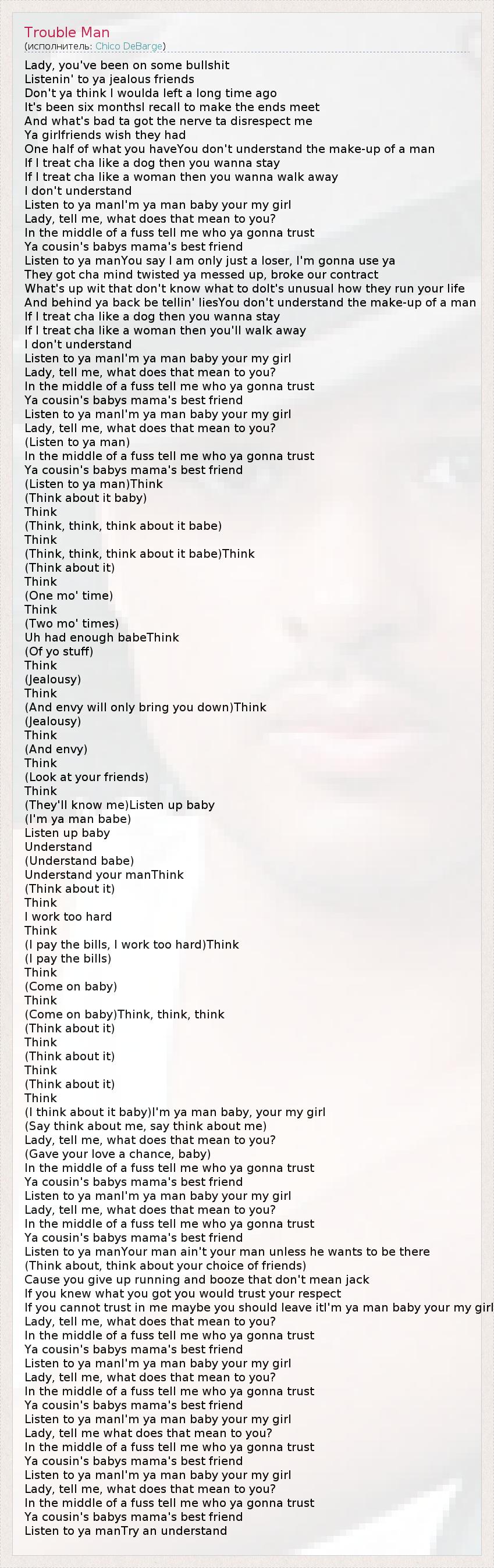 А как ты думаешь, о чем песня "Trouble Man" ?