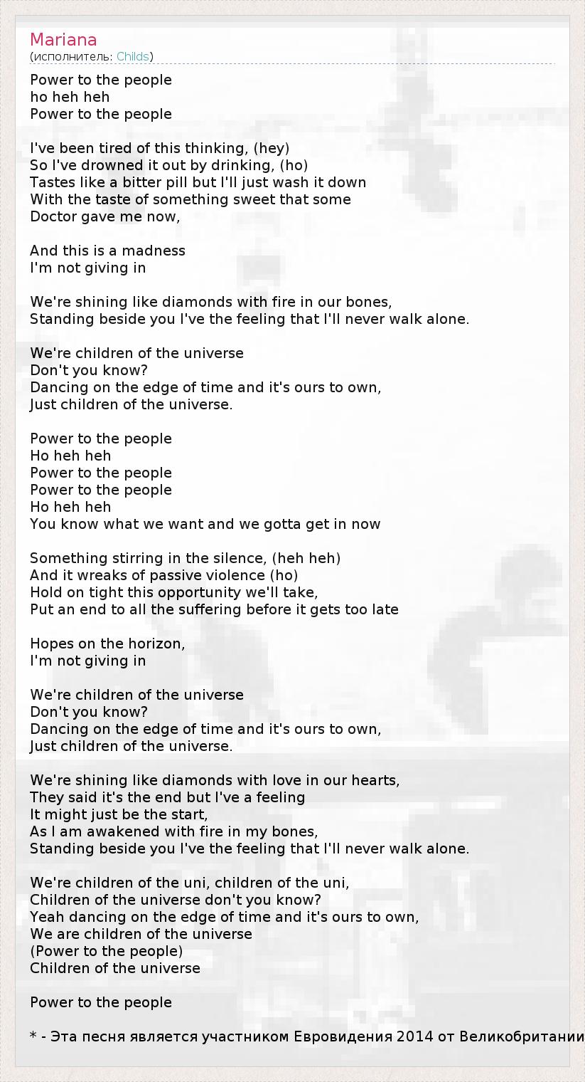 * - Эта песня является участником Евровидения 2014 от Великобритании