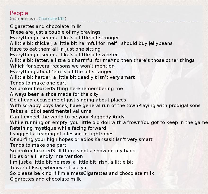 So please be kind if I'm a messCigarettes and chocolate milk