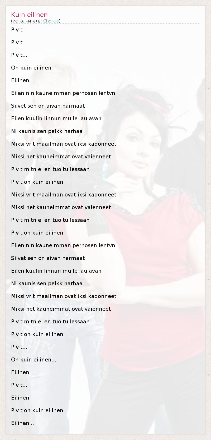 А как ты думаешь, о чем песня "Kuin eilinen" ?