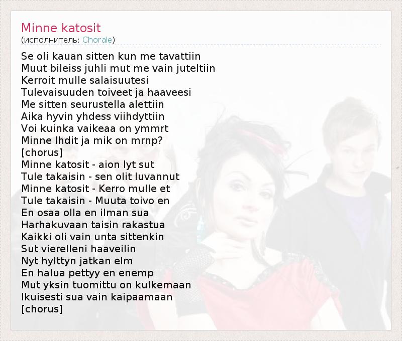 А как ты думаешь, о чем песня "Minne katosit" ?