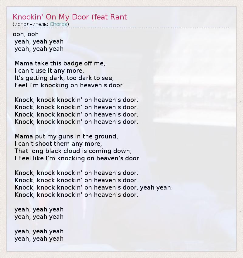 А как ты думаешь, о чем песня "Knockin' On My Door (feat Rant" ?