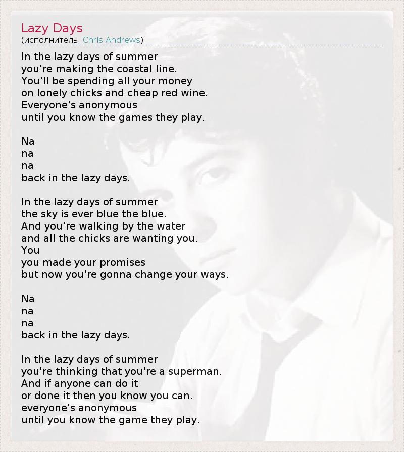 А как ты думаешь, о чем песня "Lazy Days" ?