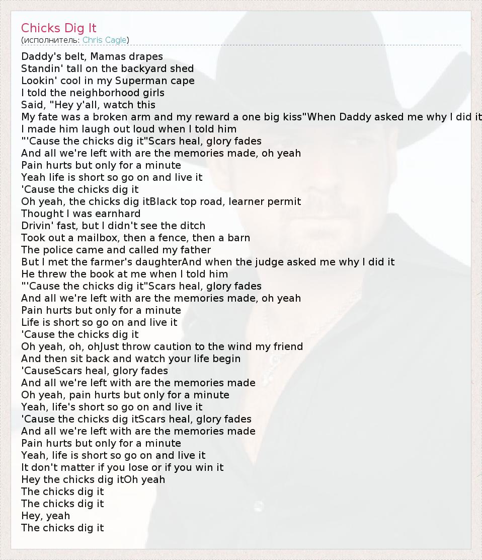 А как ты думаешь, о чем песня "Chicks Dig It" ?