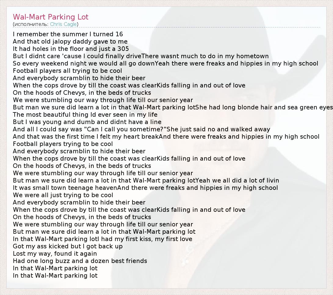 А как ты думаешь, о чем песня "Wal-Mart Parking Lot" ?