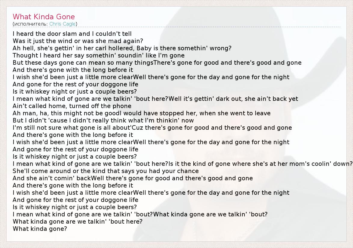 А как ты думаешь, о чем песня "What Kinda Gone" ?