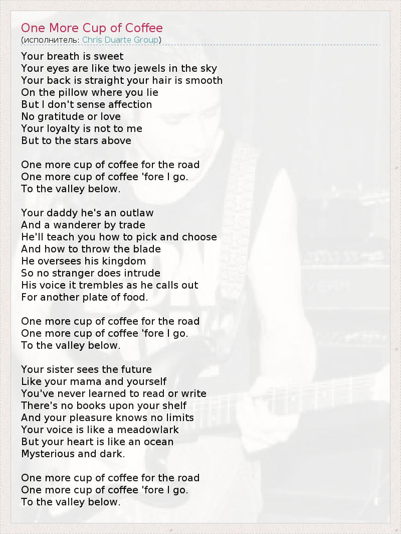 А как ты думаешь, о чем песня "One More Cup of Coffee" ?