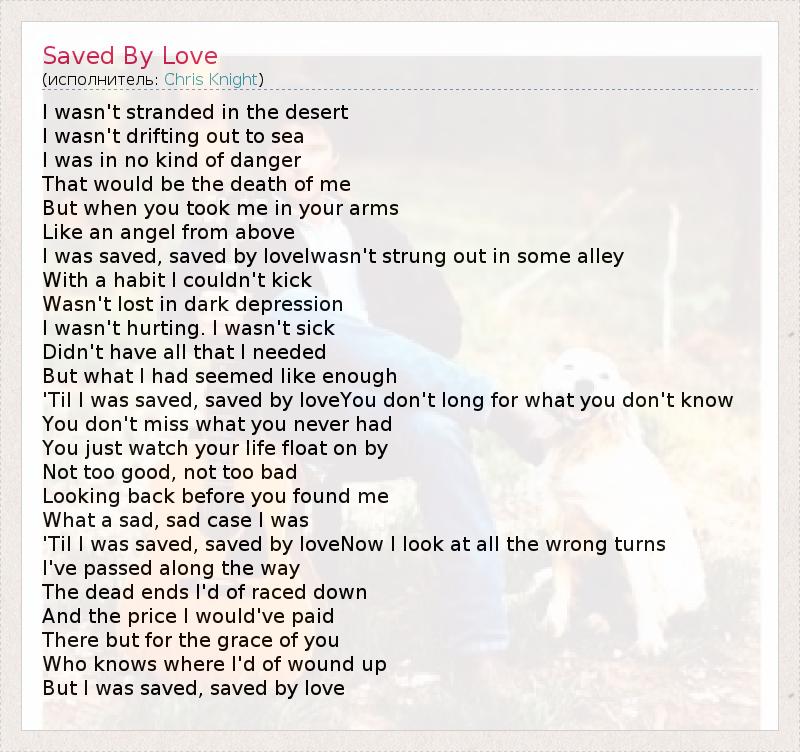 А как ты думаешь, о чем песня "Saved By Love" ?