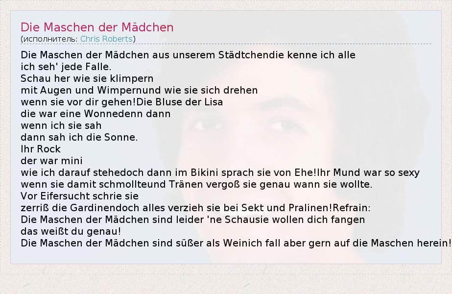 А как ты думаешь, о чем песня "Die Maschen der Mädchen" ?