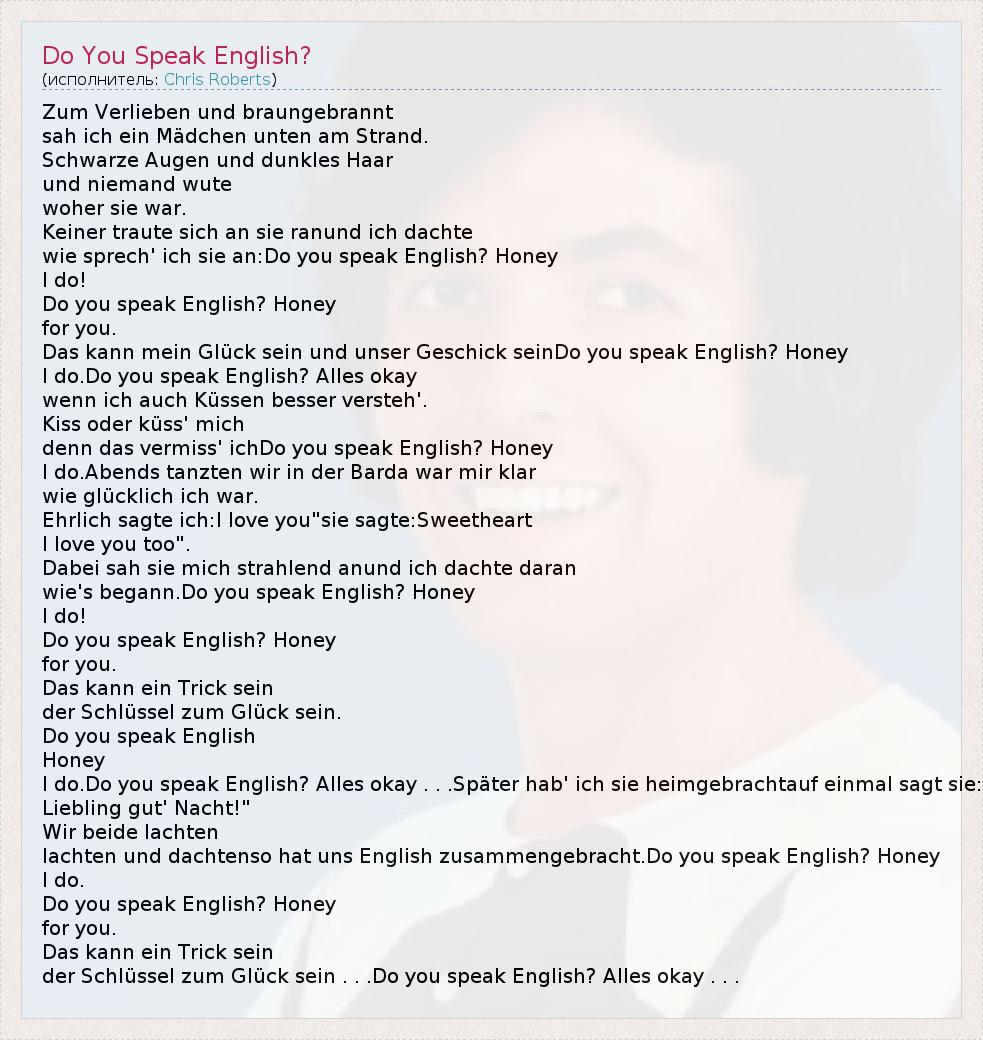 А как ты думаешь, о чем песня "Do You Speak English?" ?