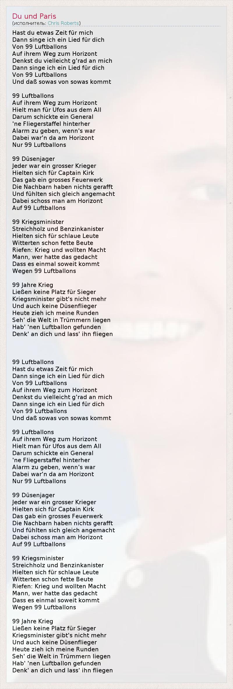 А как ты думаешь, о чем песня "Du und Paris" ?
