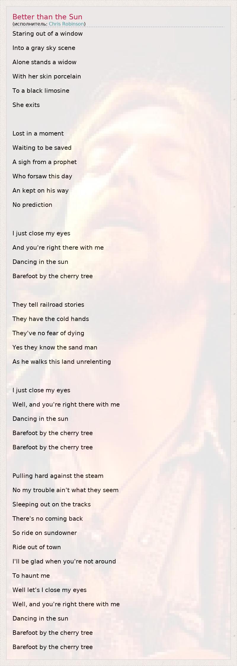 А как ты думаешь, о чем песня "Better than the Sun" ?