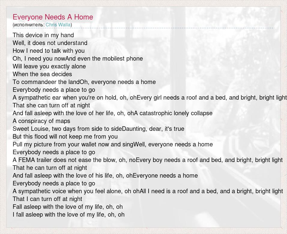 А как ты думаешь, о чем песня "Everyone Needs A Home" ?