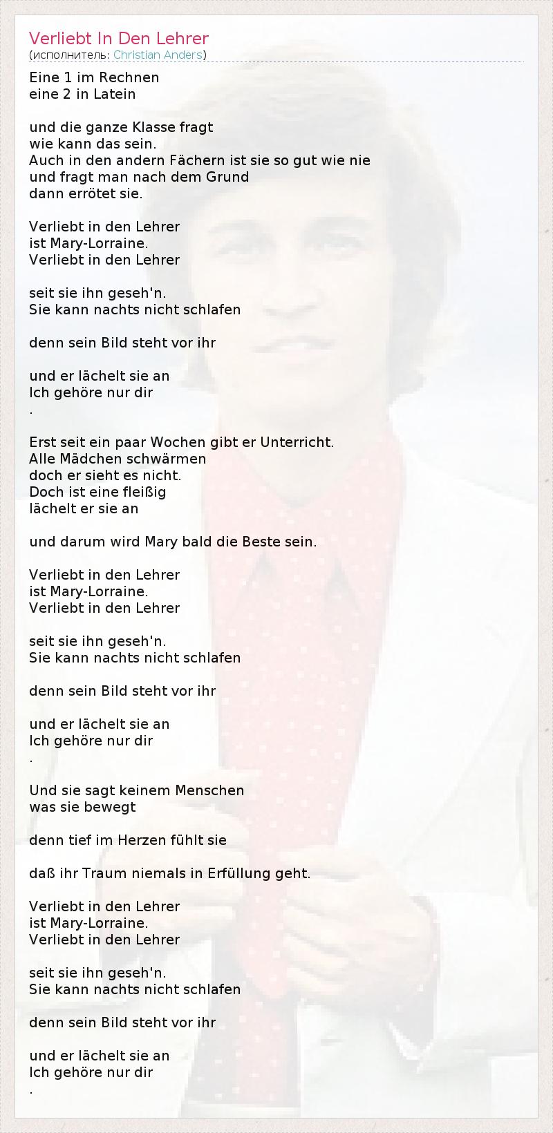 А как ты думаешь, о чем песня "Verliebt In Den Lehrer" ?