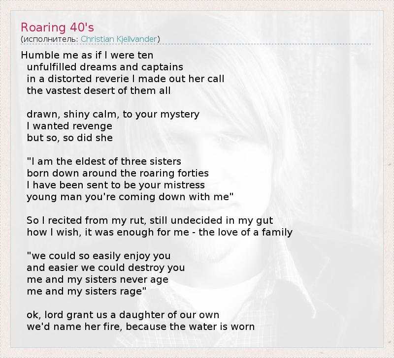 А как ты думаешь, о чем песня "Roaring 40's" ?