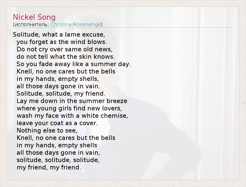 А как ты думаешь, о чем песня "Nickel Song" ?