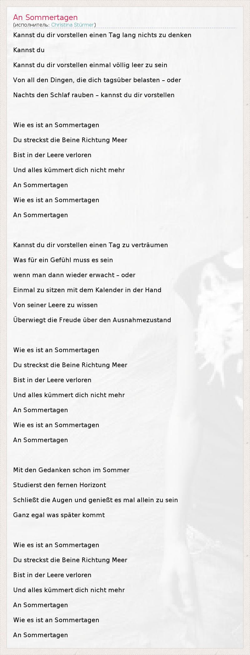А как ты думаешь, о чем песня "An Sommertagen" ?