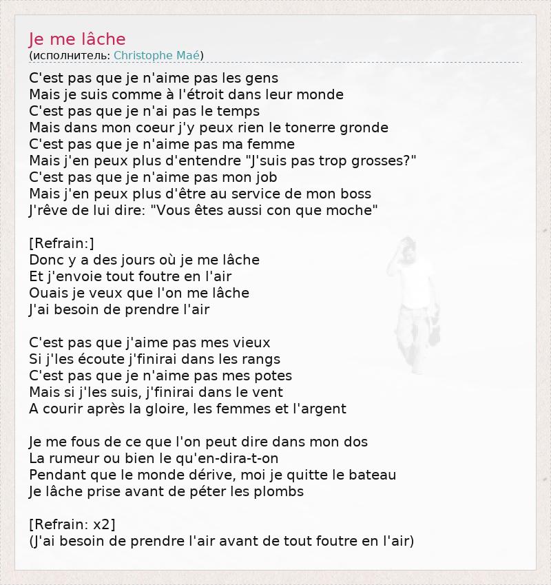 А как ты думаешь, о чем песня "Je me lâche" ?