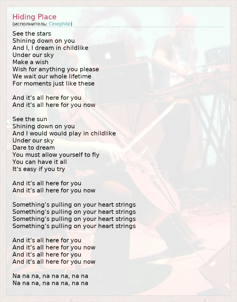 А как ты думаешь, о чем песня "Hiding Place" ?