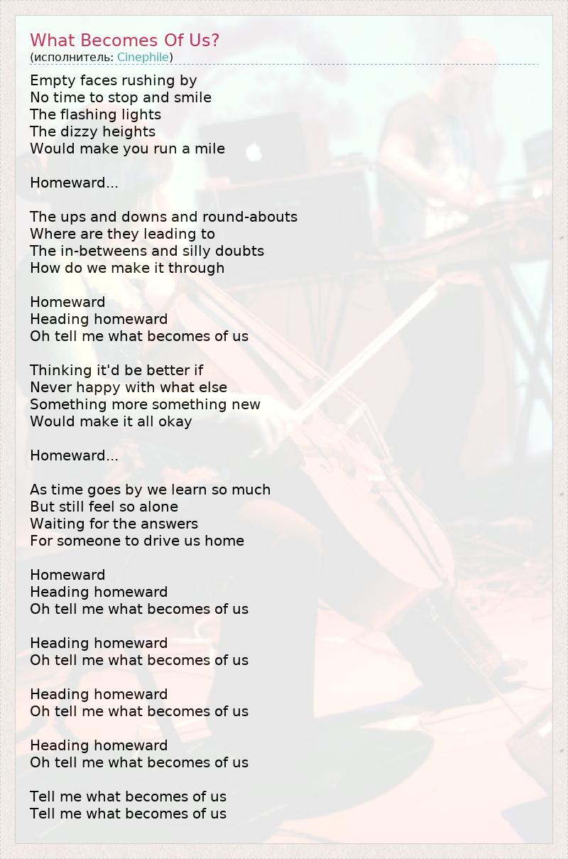 А как ты думаешь, о чем песня "What Becomes Of Us?" ?