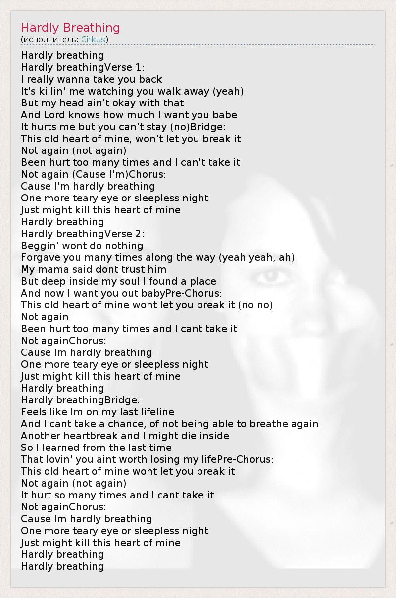 Hardly breathingVerse 2: