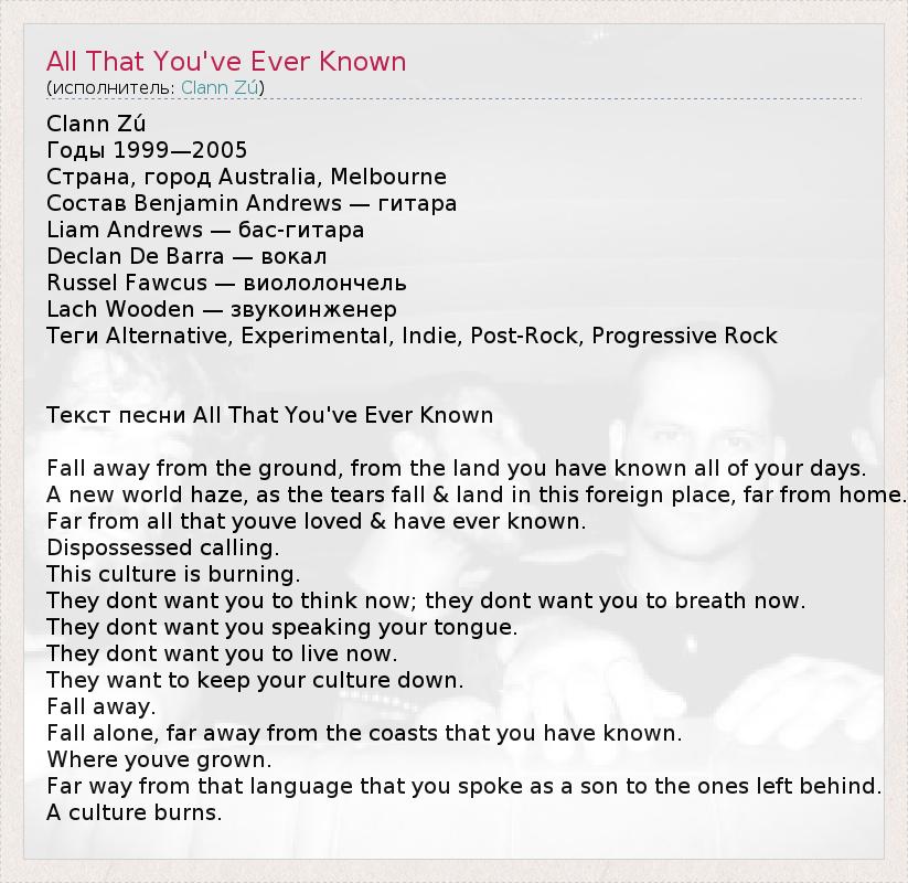 ГлавнаяИсполнителиClann ZúAll That You've Ever Known