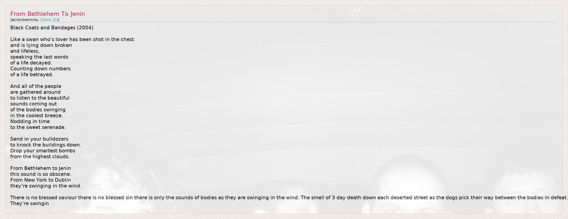 ГлавнаяИсполнителиClann ZúFrom Bethlehem To Jenin