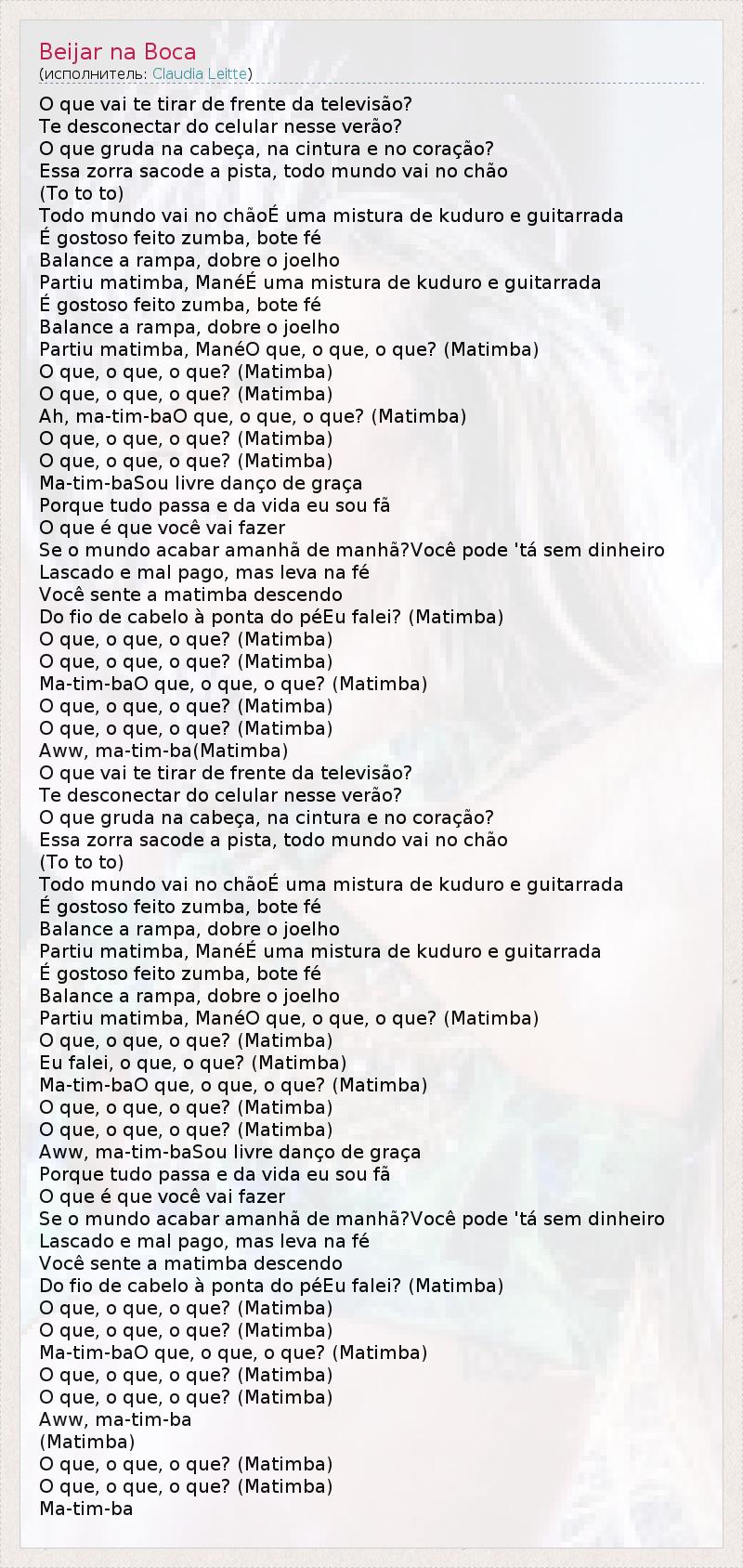 А как ты думаешь, о чем песня "Beijar na Boca" ?